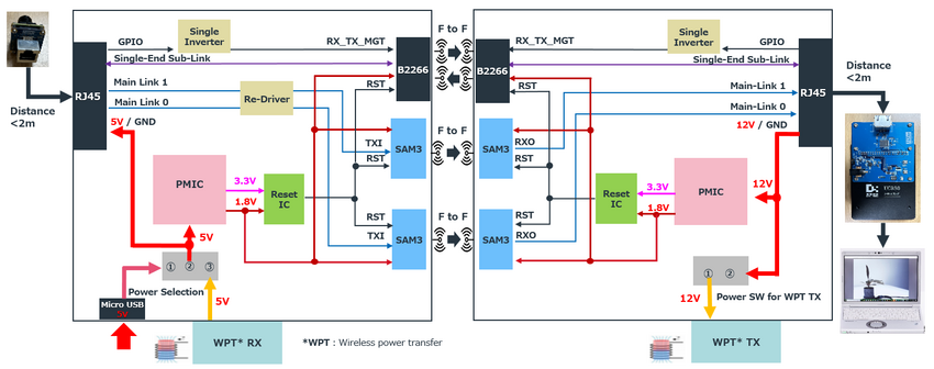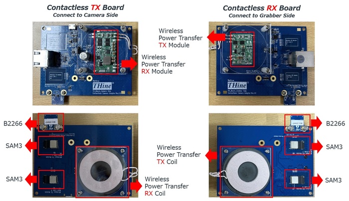另外,我们还准备了针对可拆卸式相机的演示套件。此套件只需将安装了相机的板子靠近装备无线接收器的板子,就能将影像信号无线传输到显示器端。这种设计能让相机从电子设备本体上拆卸下来并灵活使用。